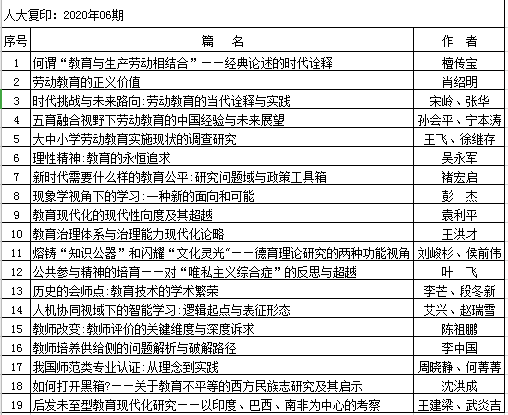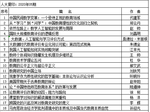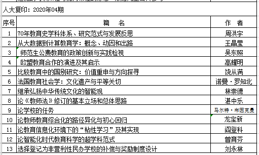 转发:2020年上半年人大复印报刊资料教育学类转载告知(二)
