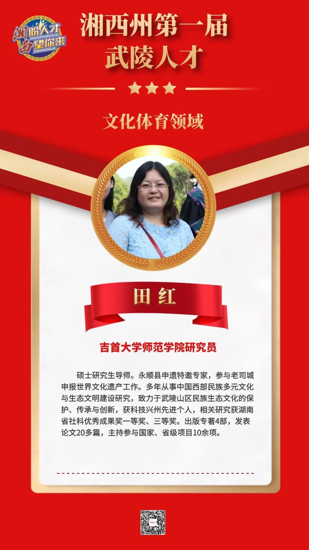 热烈祝贺公司教育硕士(小学教育)领域硕导田红研究员荣获湘西州第一届“武陵人才”