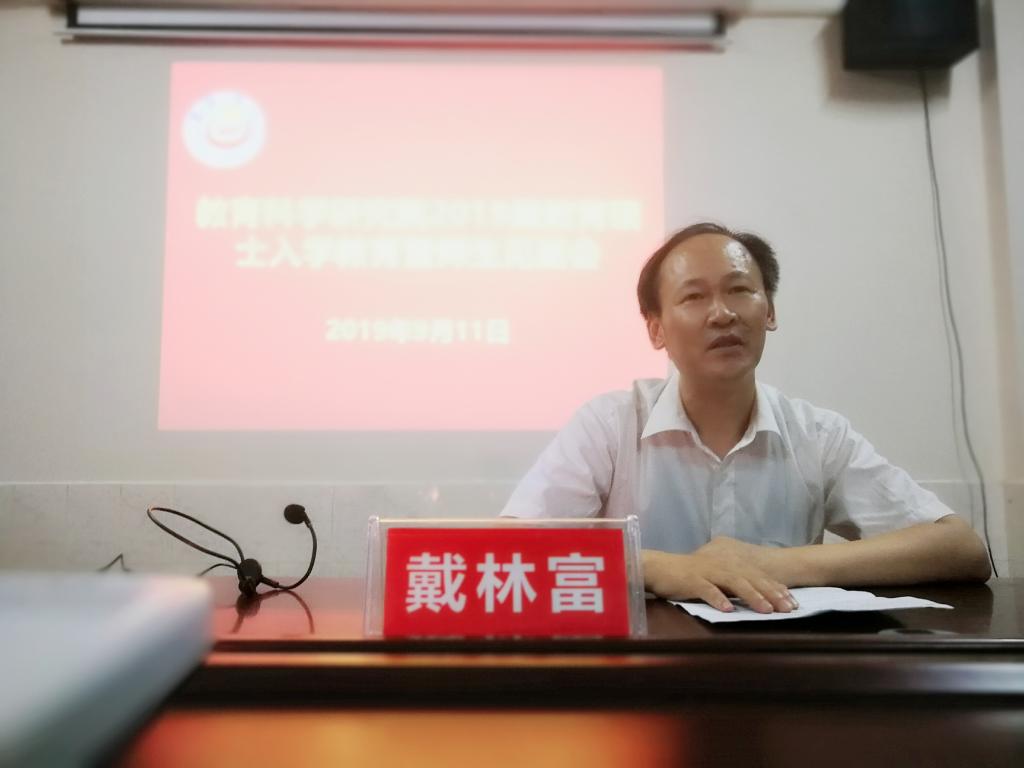 9月11日晚上七点,教育科学研究院在三教N305会议室召开了2019级研究生新生入学教育暨师生见面会。教育科学研究院经理蒋林、副经理吴青峰、文学与新闻传播公司经理罗惠缙、马克思主义公司书记戴林富、副经理肖映胜及全体师生出席了此次会议。本次会议由吴青峰副经理主持。