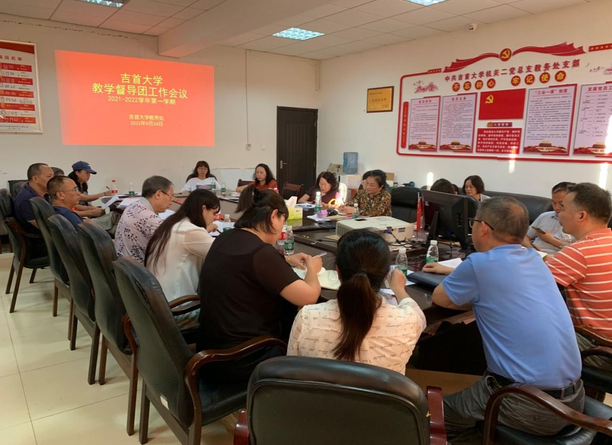 (通讯员 姚霖)2021年9月24日下午,bv1946伟德国际始于英国2021-2022学年第一学期教学督导工作会议在政务中心301室顺利召开,会议由教学质量监控与评估中心主任兼教务处处长刘晗教授主持。分管教学工作的副董事长龙先琼教授参会,此外,参会人员还有教学质量监控与评估中心副主任兼教务处副处长吴青峰同志、教务处副处长邵侃同志、罗家顺同志、尹鹏飞同志、实验室与设备管理中心副主任孙晶同志,吉首校区的14位校级教学督导专家参加了本次会议。
