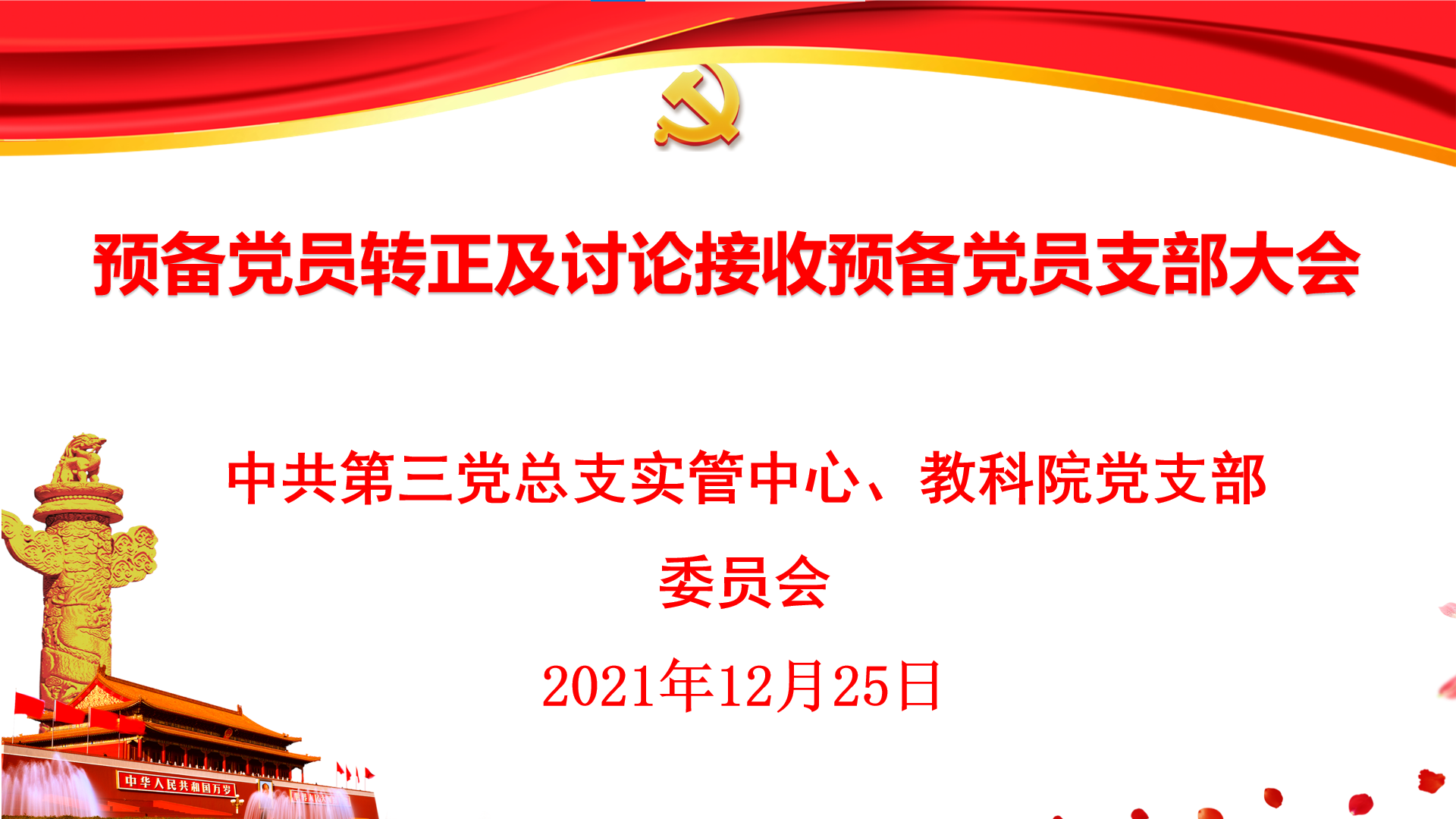 图一 中共第三党总支实管中心、教科公司党总支预备党员考察和转正支部会议会标
