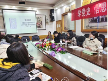 本期读书汇报会由王煜主讲,她分享的是《普通高中语文课程标准(2017版)教师指导语文》,围绕高中语文课标修订的原因、依据以及具体内容的变化三个方面阐述2017版新课标在旧课标基础上的改动。对新课标中提出的一些新概念如学习任务群、选择性必修等做了具体的说明并与大家分享了她的阅读体验,总结了新课标对语文教师提出的改变教学方式、调整教学内容组织形式等新要求。