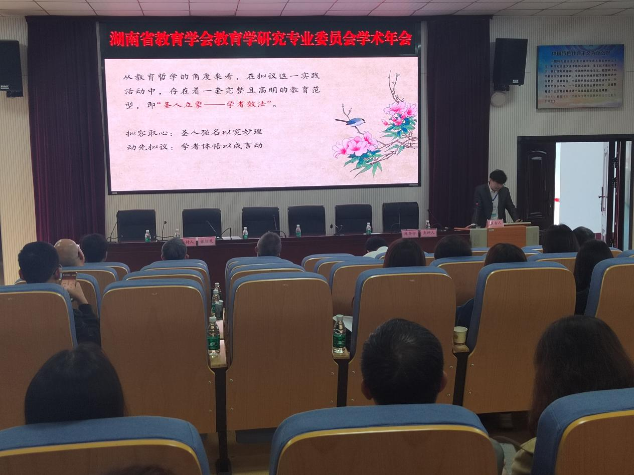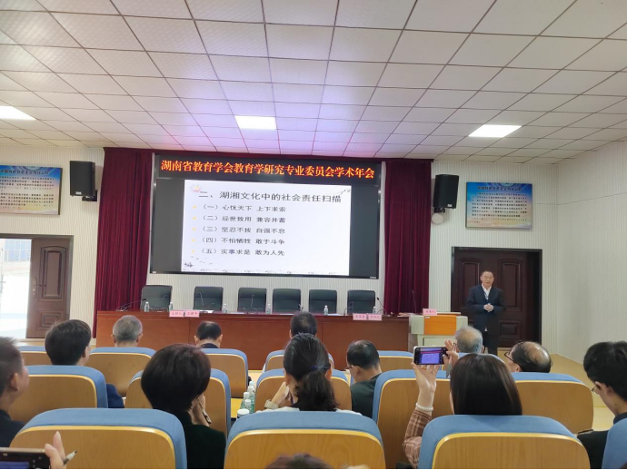 本次学术年会主要围绕湖湘文化与中国教育学精神展开,共四个议题:湖湘文化融入中国教育的理论与实践、湖湘文化中的教育思想、湖湘公司教育中的特色理论与实践以及湖湘教育名家思想。本次年会的一大特点是真正践行了新时代教育的大—中—小学一体化思想,参加本次学术年会的专家、学者共90余人,分别来自湖南省内12所大学、9所中小学以及1个市级教科院。
