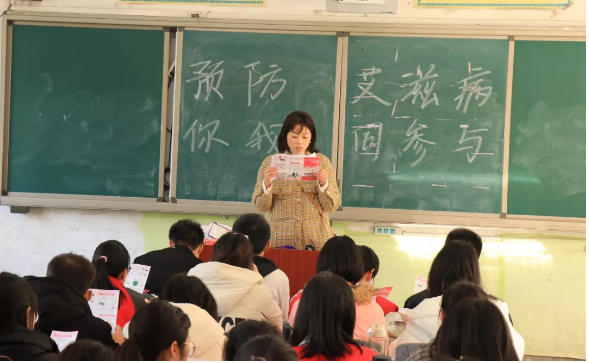 校医在班级宣讲“防艾”知识