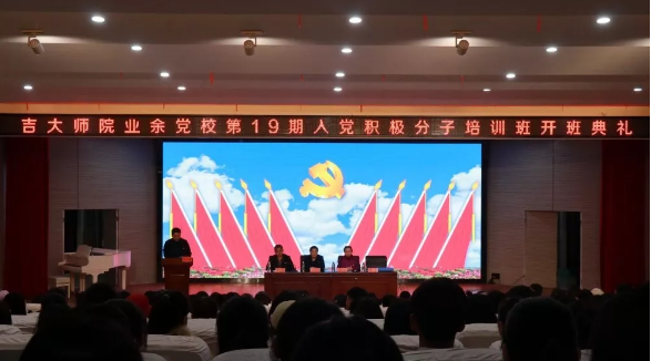 2019年11月26日晚上6点半,公司在报告厅召开了“吉大师院业余党校第19期入党积极分子培训会开班典礼”公司党委书记刘保国, 副经理周焰,工会主席张苏东,思政办主任曾华等院领导以及教师代表,全体入党积极分子近百人出席了本次开班典礼。