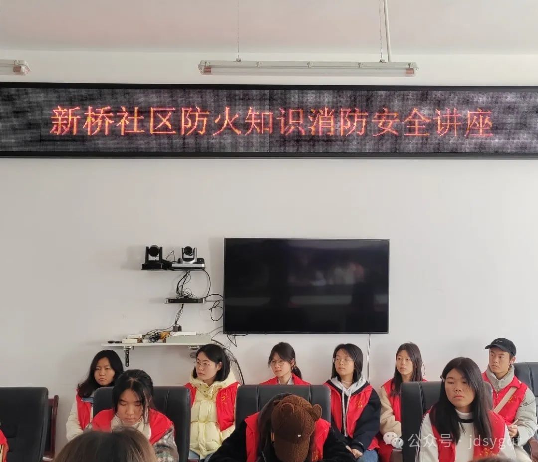 在新桥社区会议室,何丽萍同学重点围绕家中安全用电常识、灭火的基本方法、怎样使用灭火器等消防知识进行宣传讲解,现场示范了灭火器的正确使用方法,通过一个个真实案例的展示,让同学们深刻认识到消防安全的重要性,引导大家养成良好的用火用电生活习惯,真正做到防范于未然。