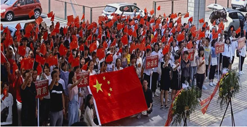 活动最后一项——全体成员与国旗合影