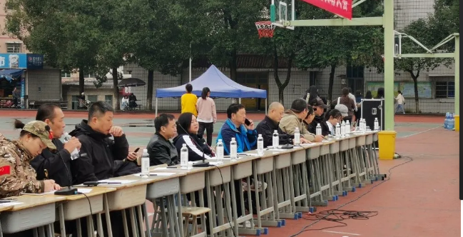 第二项由军训团总教练员严湘为大家讲解军训会操的评分标准,本次评分由院系各位老师参与评选。