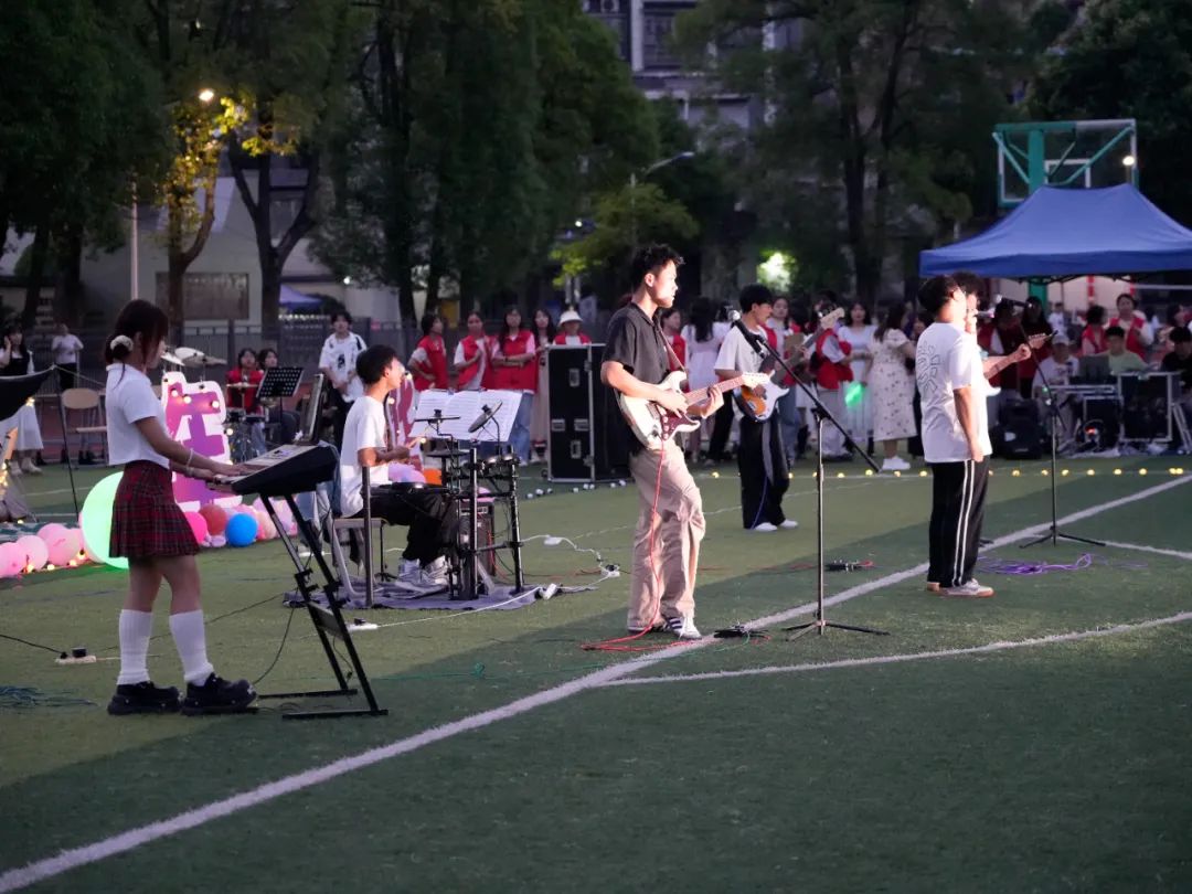 放肆的鼓点、跳动的音符,都深深的敲打着场下听众的心。音乐使我们短暂相聚,是操场的肆意歌唱,是青春的肆无忌惮!让我们一起在绿意盎然的草坪上,感受音符的跳跃!用旋律记录青春,用歌声唱响未来!
