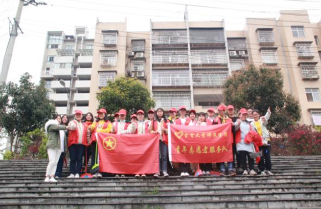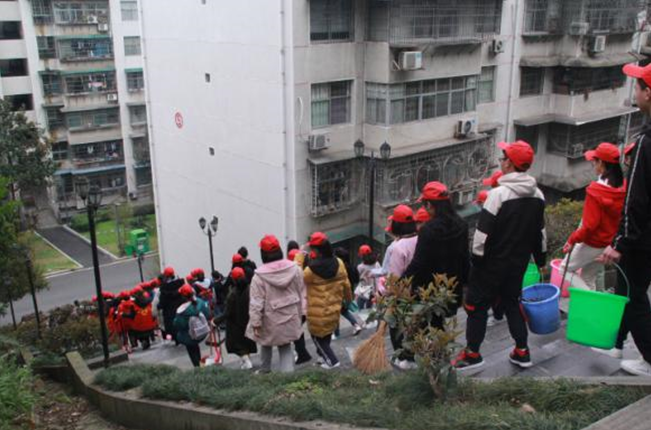 12:10参加此次活动的老师、志愿者以及各系的同学们都已经在院办门前集合完毕,大家带着小红帽穿着红色的小马甲,手里拿着工具有序的按照系别站好等待着下一个活动流程,春风送暖,万物勃发,一切都与今天的阳光映照的刚刚好,脸上的笑容镀上了青春的光彩!
