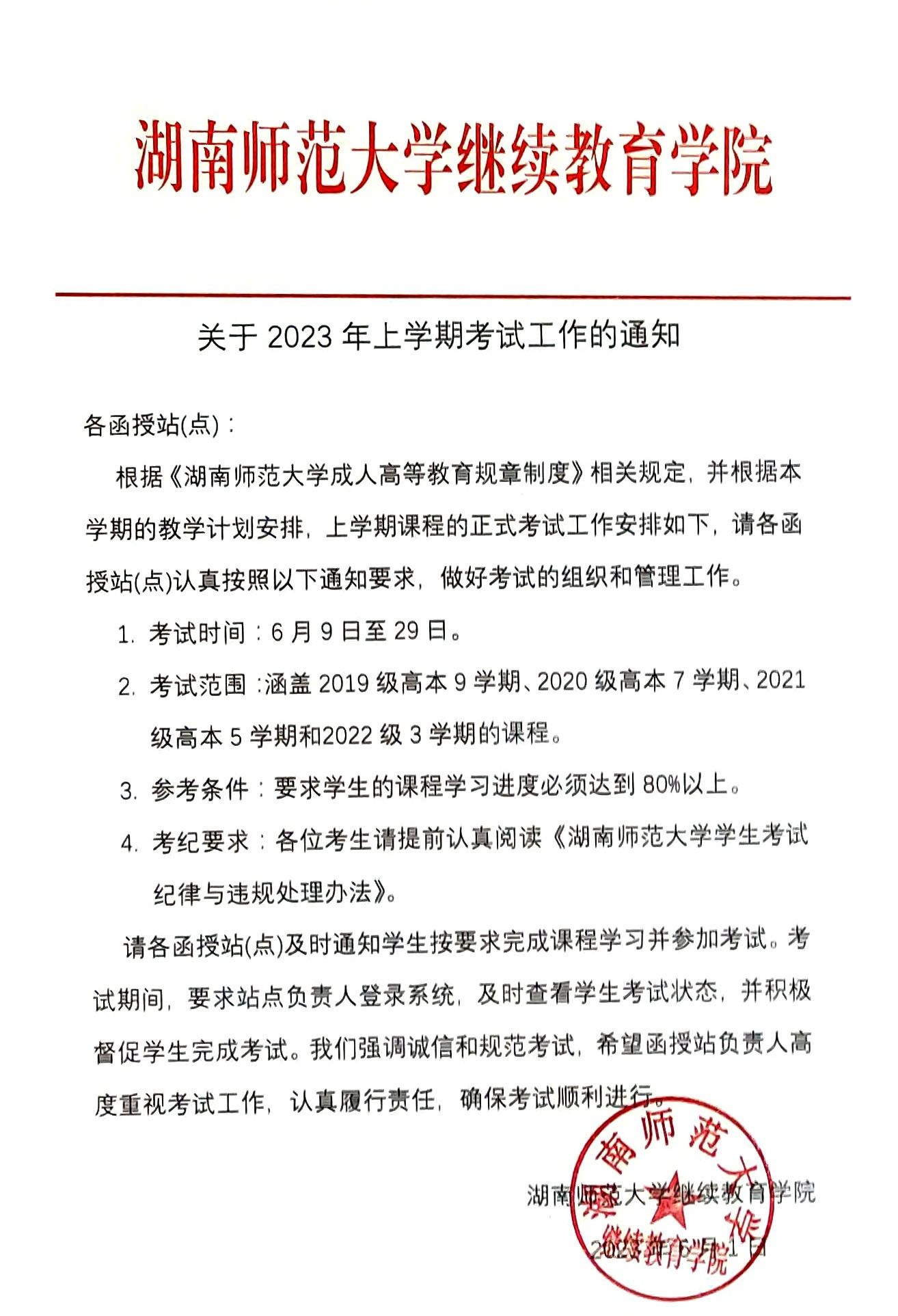 关于湖南师范大学2023年上学期考试工作的通知