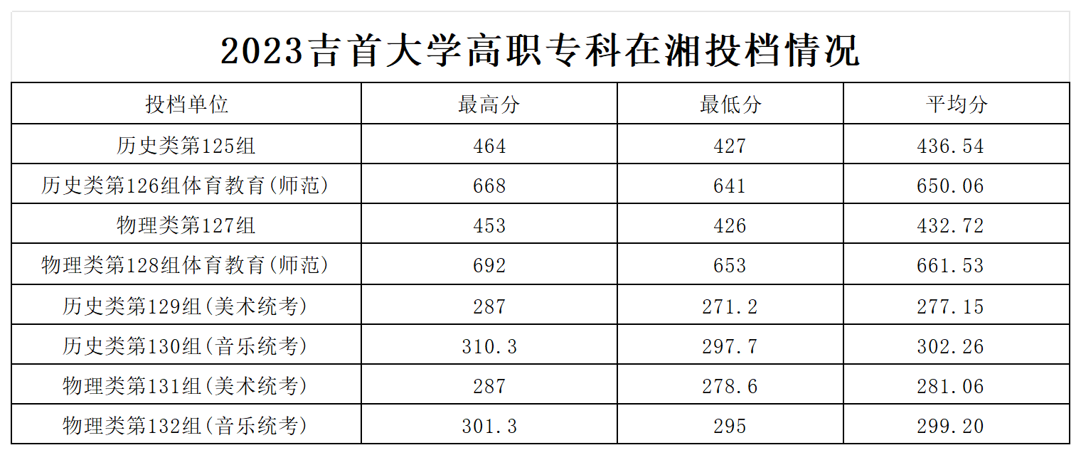 2023年bevictor1946韦德官网专科批次在湘投档分数线