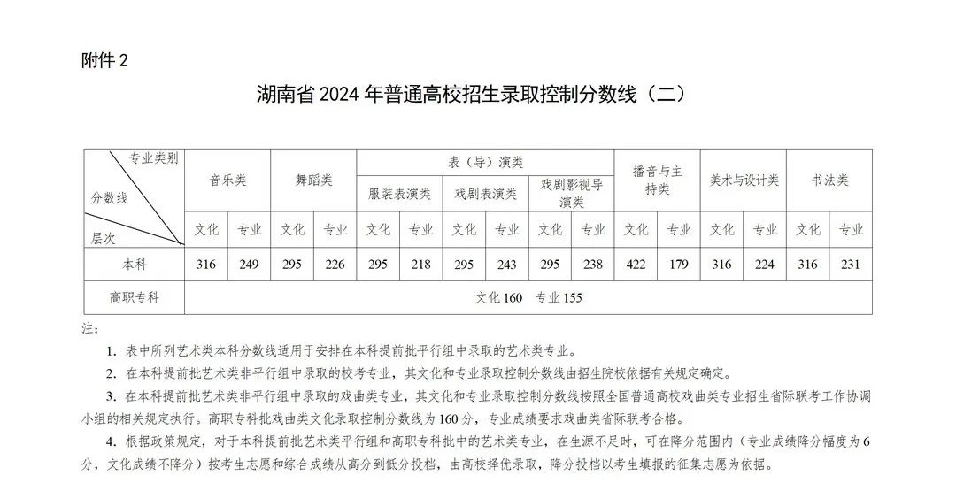 湖南省2024年普通高校招生各批次录取控制分数线公布!