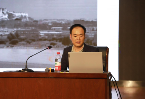 丁超老师先向大家介绍他的导师冯建国的藏族摄影。冯建国,清华大学长聘教授,研究生导师,是大画幅摄影的开拓者。他的摄影作品人物细腻,风景大气,充分体现出大画幅摄影的优点。讲座期间,丁老师播放了冯建国拍摄黄山时的情景。丁老师强调,在黄山的拍摄过程异常艰辛,照片冲洗过程特别繁琐。同学们从丁老师的言语中深刻体会到作为一名摄影艺术家,创作的作品必须是万中挑一,创作历程十分艰苦。