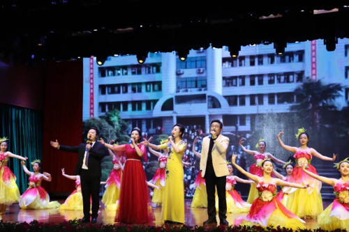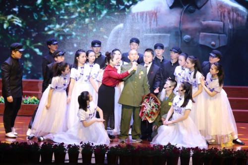 活动围绕诵一篇经典、跳一支舞蹈、讲一个故事、看一段视频、说一段快板、演一段小剧、唱一首红歌、作一番点评,“八个一”环节展开,从不同角度、不同层面把爱国精神和师德师魂贯穿节目其中。朗诵《乌斯浑河随想》和快板表演《校园新风尚》,把对革命先烈的崇敬和对教师的赞美展现得淋漓尽致。歌舞表演《不忘初心》《映山红》,大气磅礴的配乐,振奋人心的表演,引得台下观众掌声阵阵。情景剧《罗盛教雕像下的军礼》表演,激励着台下的师生,不负韶华、不负时代,矢志向前。《感动中国之乡村教师张玉滚》的故事感人至深,“前一秒劈柴生火,下一秒执鞭上课”的河南省南阳市镇平县高丘镇黑虎庙小学董事长张玉滚,诠释了“捧着一颗心来,不带半根草去”的高尚师德情操,他说:“希望孩子们有知识,改变他们的命运。”最后,大家齐唱《没有共产党就没有新中国》,活动落下帷幕。