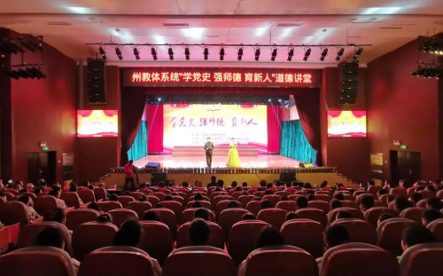 4月20日,湘西土家族苗族自治州直教体系统“学党史·强师德·育新人”2021年第一期道德讲堂活动,在吉大师院附小教育集团溶江小学杏坛报告厅举行。本次道德讲堂由州教体局主办,州教体局机关第一党支部和吉大师院附小教育集团共同承办,吉大师院、州民中、州二民中、州民族艺术公司、州幼儿园共同协办。湘西州政府副州长吴凌频,州教育和体育局党组书记、局长田勇,州教体局机关全体干部职工,州直教体系统各管理单位负责人以及各县市教体局局长和相关负责人共670余人参加了本次活动。