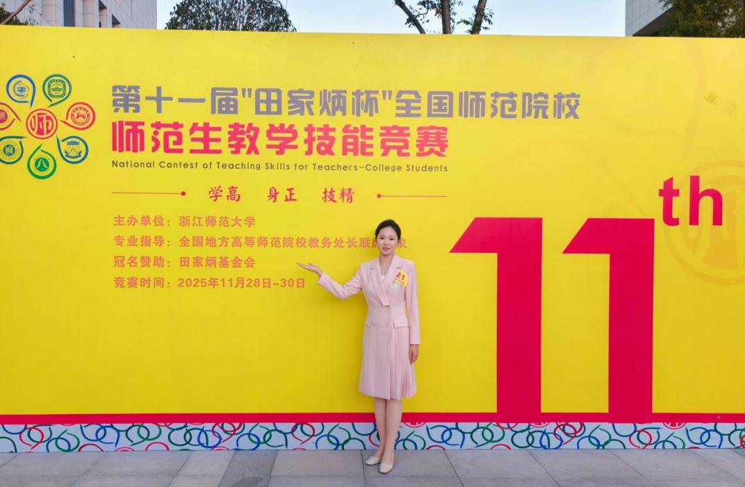 2025年11月28日至30日,由中国教育学会、田家炳基金会等联合主办的第十一届“田家炳杯”全国师范院校师范生教学技能竞赛决赛在浙江师范大学圆满落幕。在这场代表全国师范生教学技能最高水平的竞技舞台上,公司黄书琴老师指导的2022级小学教育文本三班钟好同学,凭借扎实的学科素养、深厚的教学功底和出色的现场表现,从众多选手中脱颖而出,荣获小学教育(综合)组二等奖。