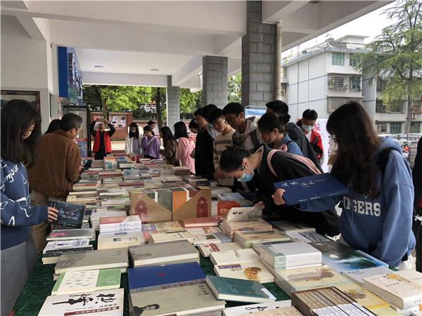 此次活动开展的主题明确,好书推荐唤醒沉睡的借阅证,读者调研、心愿寄语等诸多内容十分丰富精彩。活动中,书籍展览区很快就迎来了大批的读者,大家在上课下课的路上经过并驻足,或踏进沈从文笔下的湘西世界,或走入黄永玉画里的奇景,又抑或是在神秘湘西的传统事与物中流连忘返……不仅仅是湘西传统文化相关图书,《论语》《孟子》《离骚》等最早能追溯到春秋战国两汉的经典书文也在展示的书籍之中,其中唐朝宋朝优秀诗人的诗词集亦是大受欢迎。