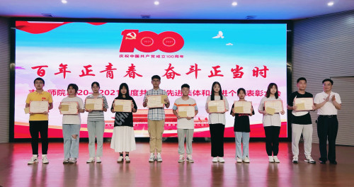 2021年新团员集体宣誓后,大会进行了隆重的颁奖仪式,会上对初教系团总支等3个团总支、教育系20级小教2班团支部等7个支部、李薇等4名团总支书记、邓玉嘉等121名团干、莫沁舒等161名团员、麦田志愿者协会等3个社团、刘晓蓉等10名“社团工作先进个人”、李晴等20名“优秀青年志愿者”、蒋文熠等5名“优秀通讯员”、张好等5名“优秀编辑”、王思怡等5名“优秀播音员”进行表彰。