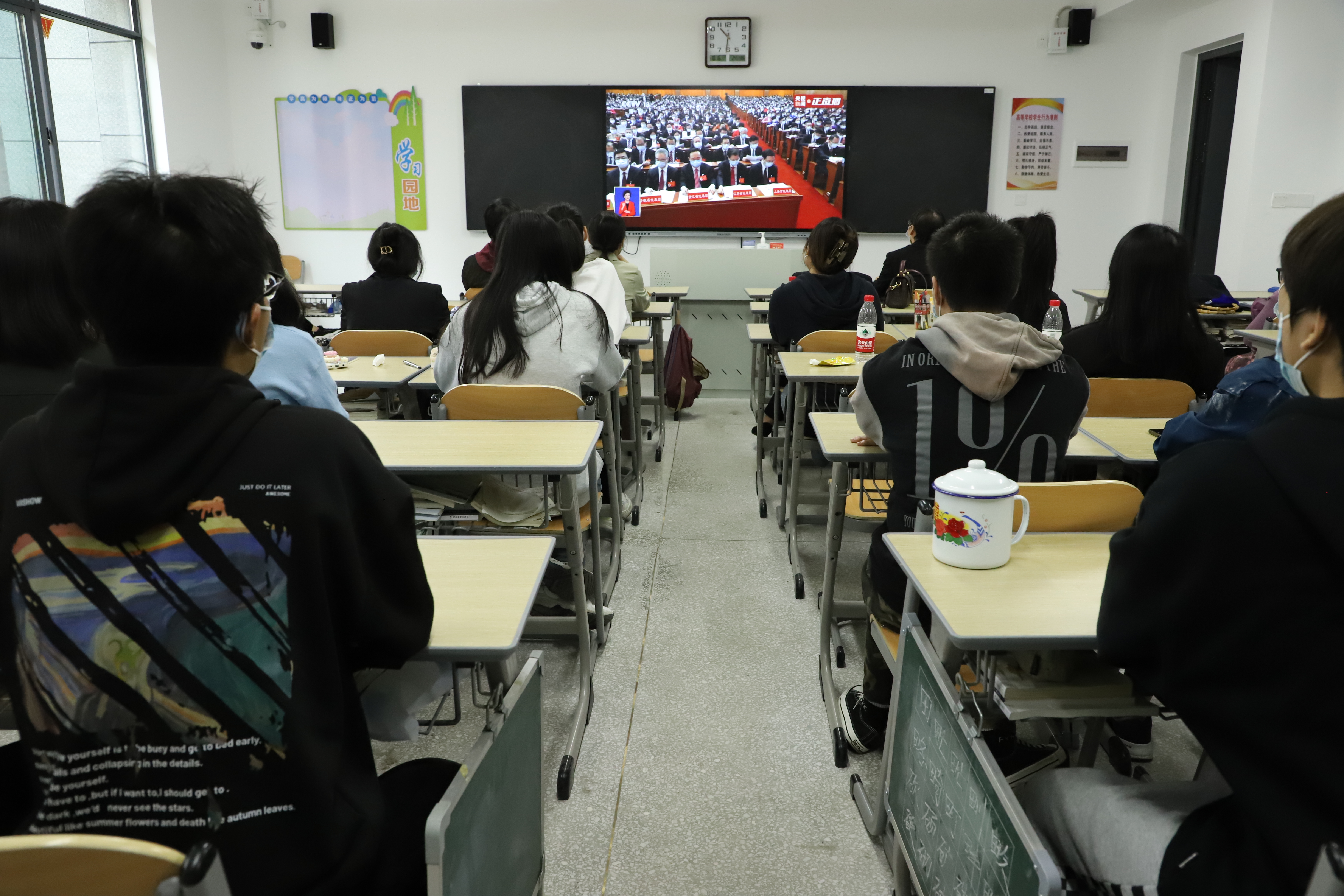 公司师生党员、两会干部、退休党员代表分别在报告厅、会议室集中收看二十大开幕会盛况