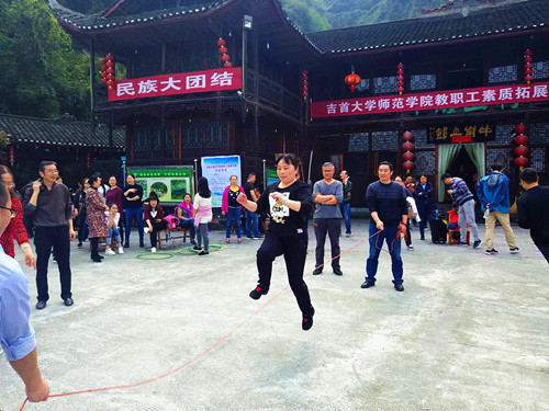 本次活动精心设置了“小组跳绳”和“接力钻圈”等趣味游戏,各工会小组全员参与,热情投入。游戏开始前,各小组就围在一起商量对策,热身练习,开赛哨声一响,场上选手协力配合,你追我赶;场下观众,掌声连连,叫好不断,一时间,比赛热火朝天,精彩纷呈。经过激烈的角逐,和选手的通力协作,后勤财务工会小组、图书馆、艺术系分获“小组跳绳”一、二、三名;教育系、艺术系、后勤财务工会小组分获“接力钻圈”一、二、三名。