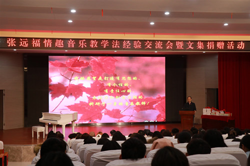 12月17日下午,湘西籍音乐教育家、作曲家张远福教授来公司举行情趣音乐教学法经验交流讲座以及文集捐赠活动。本次活动在公司报告厅隆重举行,公司党委书记刘保国担任主持。来自艺术系、教育系、初教系的两百多名师生参加了本次活动。