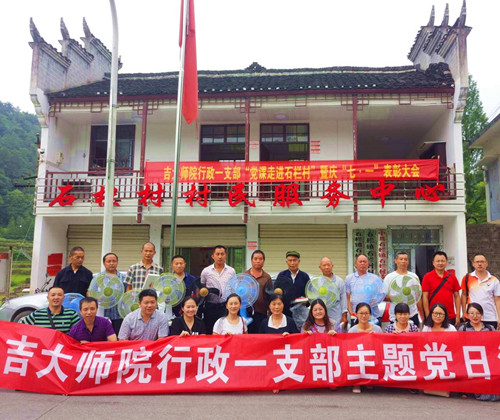 全体人员首先来到驻点扶贫村石栏村村支部举行“党课走进石栏村”暨“庆七一”表彰大会。一支部宣传委员孙丹同志围绕石栏村农村工作实际,以“不忘初心,牢记使命”为主题,为参会党员授课。要求党员同志们要带头干事,引领脱贫致富;团结干事,共同脱贫致富;坚持干事,逐步脱贫致富;创新干事,精准脱贫致富。一支部党员与石栏村的党员们共商发展,为扶贫村脱贫致富积极献言献策,与会人员纷纷发言,现场气氛热烈。会上还表彰了10名扶贫村的优秀党员,并为他们发放了证书、奖品,鼓励他们在工作和生活中要发挥模范带头作用,为村里的发展建设继续做出积极贡献。