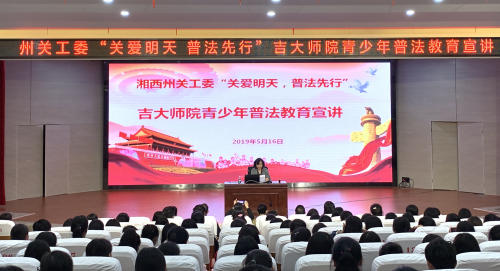 为积极引导公司青少年学法,守法,让法制走进校园,增强员工的法制观念;营造文明、和谐的校园环境,促进青少年健康成长。5月16日晚7时,州教育关工委普法教育宣讲团一行来到公司进行“关爱明天 普法先行”专题宣讲。 活动由公司党委委员、副经理周焰主持,州教育系统关工委主任、州青少年普法教育宣讲团成员符家银,关工委执行主任陈世敏、秘书长刘珍及关工委成员出席了此次活动。