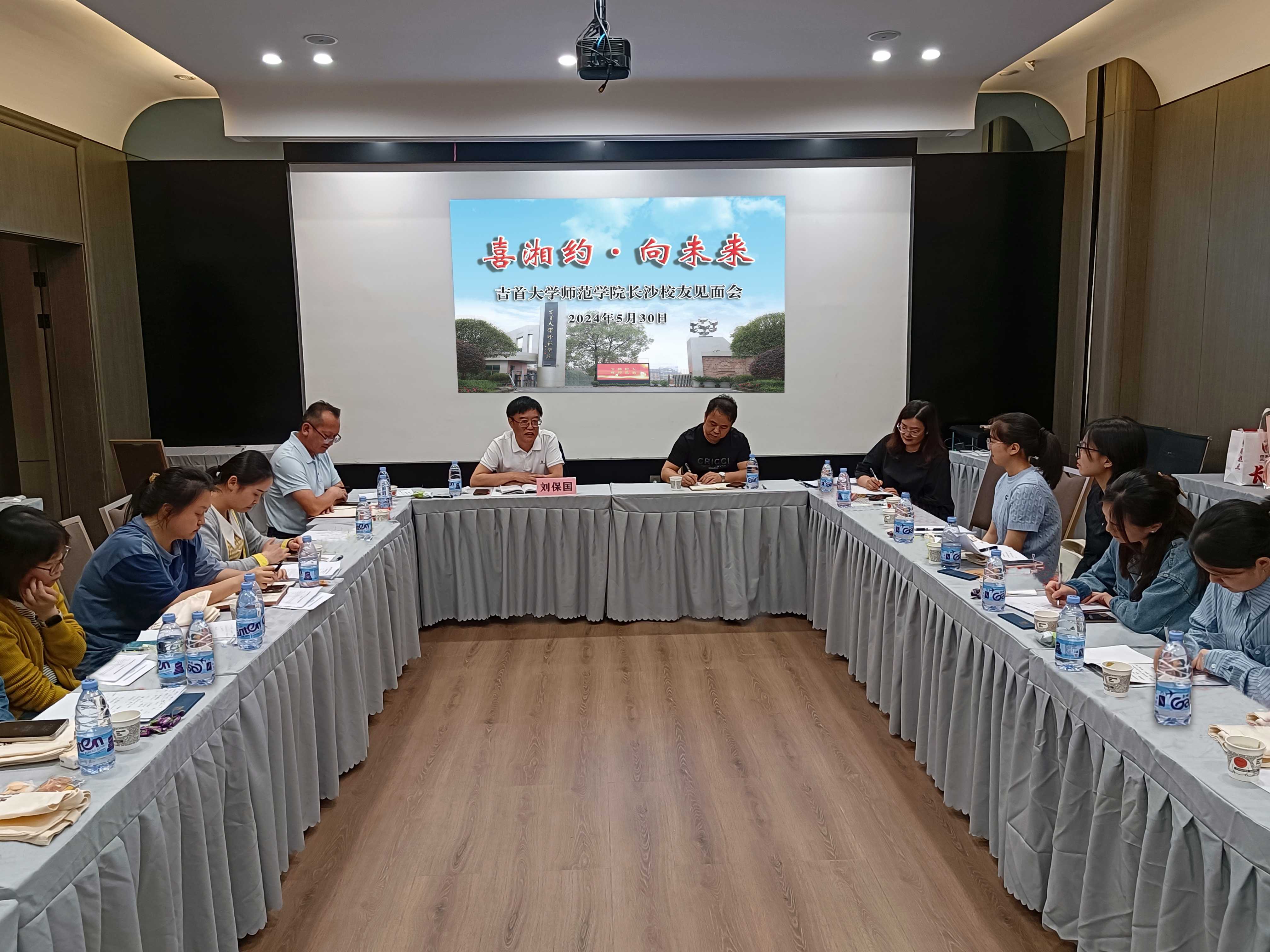 5月30日晚,吉首大学bevictor1946韦德官网在长沙举行“喜湘约·向未来”员工座谈会。伴随“东山耸翠,潕溪发祥……点燃那文明薪火传向四面八方 ”院歌,近年小学教育、学前教育专业20余名本科生员工应邀赴约,公司办公室、教务科研处、员工处主要负责人及相关专业系同志到会。党委书记刘保国在座谈会上热情讲话。