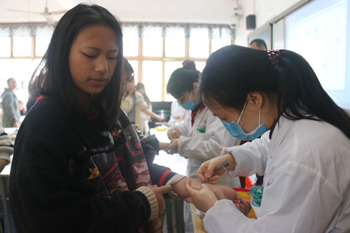 在筛查过程中,医务人员操作认真、细致,不辞辛劳,不间断地工作,热情地向同学们讲解结核病防治知识,耐心细致地告知筛查过程中注意事项并解答相关问题。通过两天紧张有序的工作,州疾控中心已经为公司三千余名在校员工进行了结核菌素皮试,并于10月29日再次返回公司对员工进行皮试结果的观察。将于11月上旬对结核菌素试验强阳性的员工进行免费胸片检查。通过系列检查,确诊为肺结核的员工将会得到免费治疗和管理。