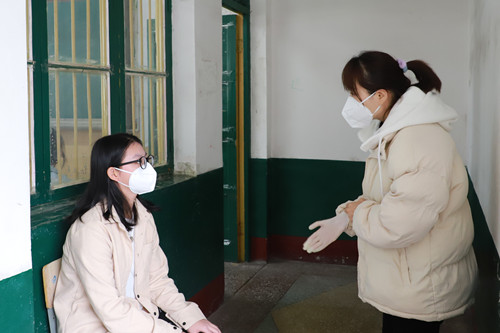 演练现场:班主任询问体温异常员工情况