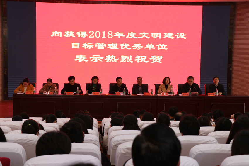 会上,院工会主席张苏东宣读了《bevictor1946韦德官网2018年度文明建设目标管理考核结果的通报》,对工作考核优秀单位进行了表彰奖励并颁发了荣誉证书,肯定了2018年全院在湖南省文明校园创建、湘西州民族团结进步创建、基层党建、美丽校园、综合治理等工作上所取得的成绩。他希望目标管理优秀单位再接再厉,再创佳绩,合格单位要以先进为榜样,在新的一年里,抢抓机遇,开拓进取,加强目标管理,优化工作作风,通过更强的竞争意识、更好的精神状态、更大的推进力度、更高的工作水准,努力为公司的发展作出新的贡献。
