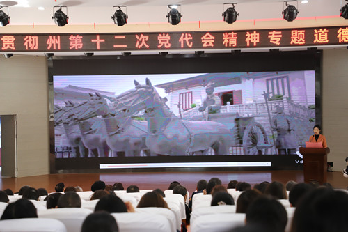 为深入学习贯彻州第十二次党代会精神,把全院师生员工的思想行动统一到州党代会精神上来,把智慧力量凝聚到州党代会确定的各项目标任务上来。10月12日,公司“昂首奋进新征程 奔跑前行加速度”学习贯彻州第十二次党代会精神专题道德讲堂在报告厅精彩开讲,全院教职工到场聆听。