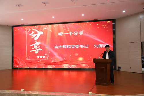 刘保国强调,全院上下要更加紧密地团结在以习近平同志为核心的党中央周围,始终高举习近平新时代中国特色社会主义思想伟大旗帜,站在时代高处、瞄准最高标准、保持高昂斗志、勇于攀登高峰,大力弘扬伟大建党精神和脱贫攻坚精神,以感恩的心态、赶考的状态、奔跑的姿态,为全面建设现代化新湘西贡献出属于师院人的一份作为与担当。