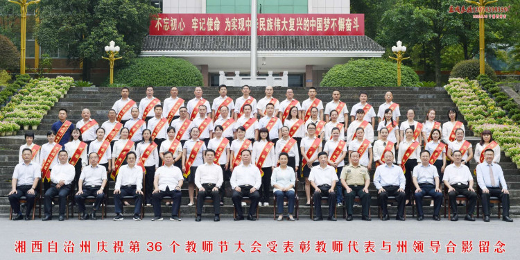 (图为受表彰教师代表与州领导合影留念)