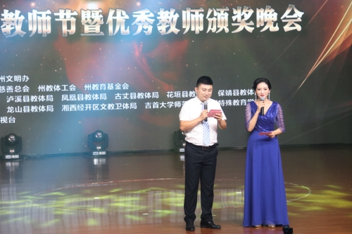 为庆祝第34个教师节,进一步强化师德宣传和教育,营造尊师重教的浓厚氛围,9月9日晚,湘西州举行庆祝第34个教师节暨优秀教师颁奖晚会。湘西州委书记叶红专,湘西州政协主席刘昌刚,湘西州委常委、副州长董怀敏,湘西州人大常委会副主任刘小刚,副州长李平出席。